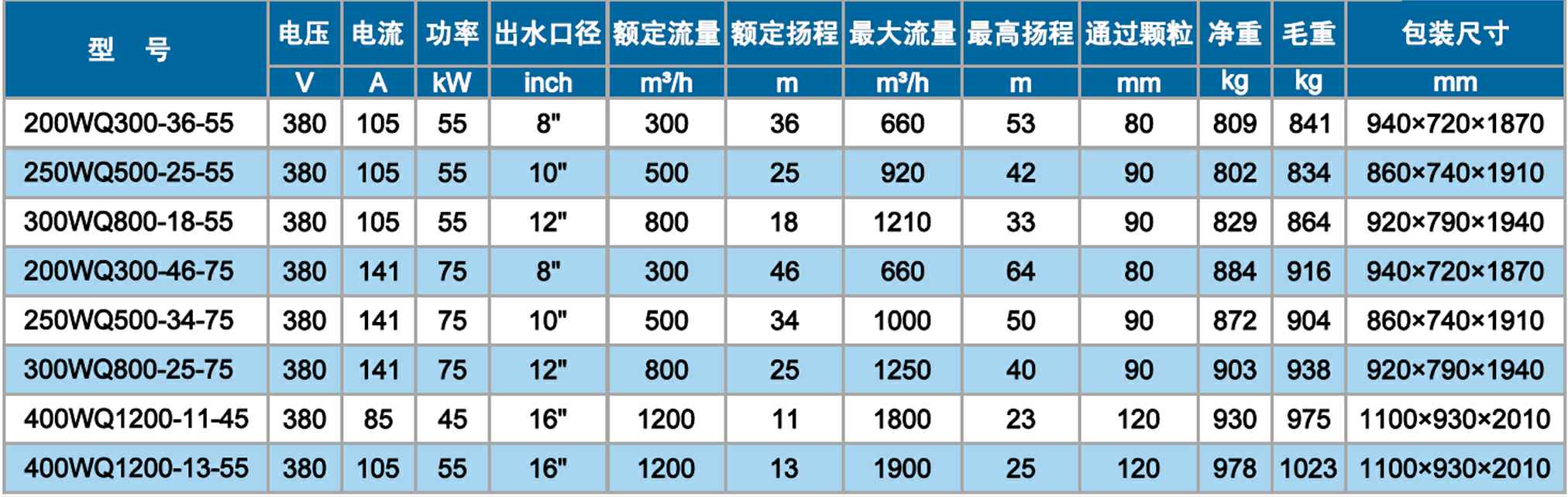 WQ双流道潜水排污泵 55~75kW