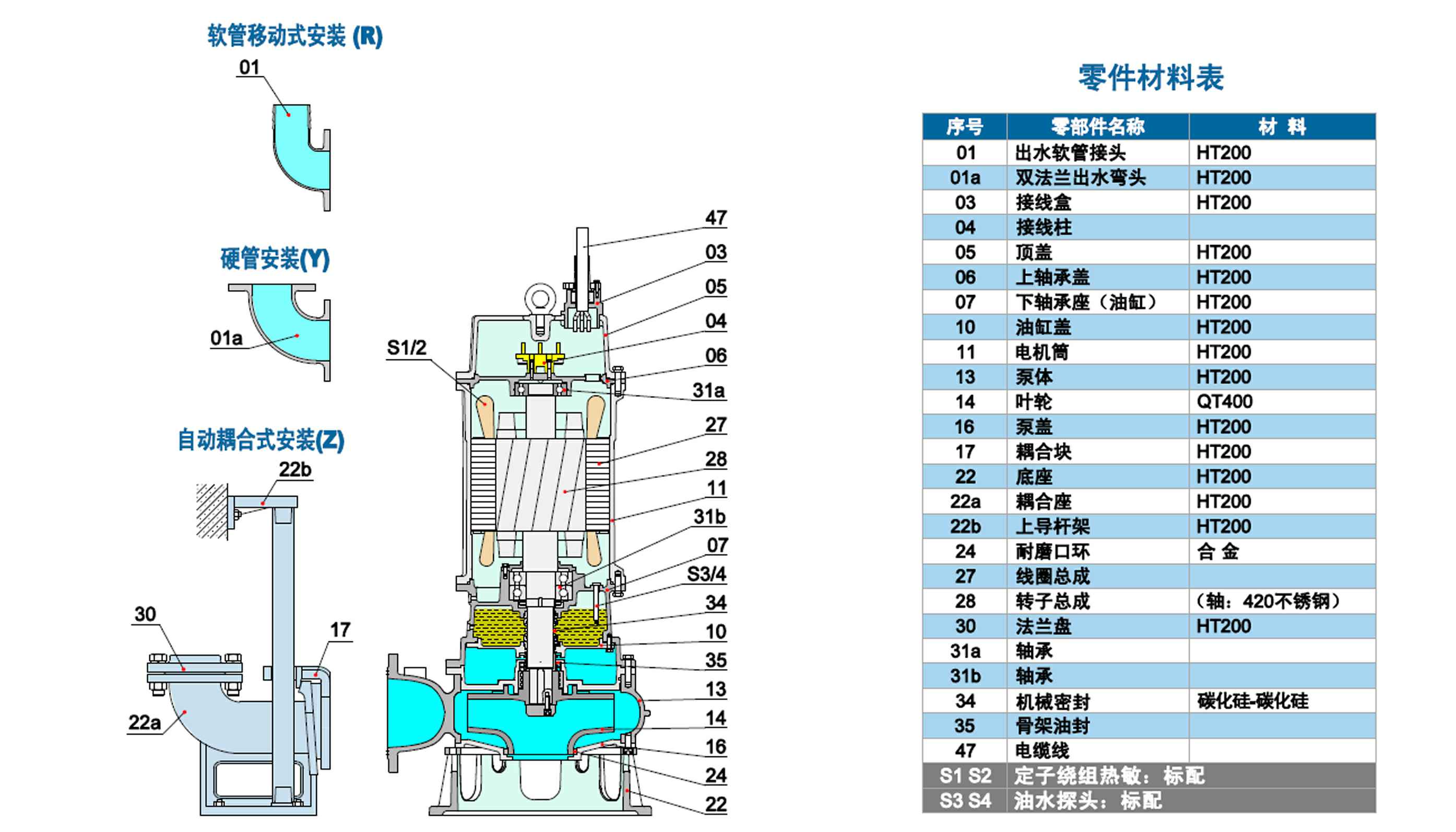 WQ系列双流道潜水排污泵结合了国内外同类优秀产品,经过PCAD软件优化设计而成,在水力模型、结构、密封、冷却和保护控制等方面进行了综合优化和创新设计。叶轮为双流道设计,有较大的进口和出口宽度,无堵塞性能好,高效节能,安全可靠,寿命长。