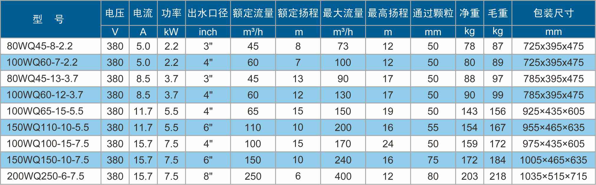 WQ双流道潜水排污泵 2.2~7.5kW 四极